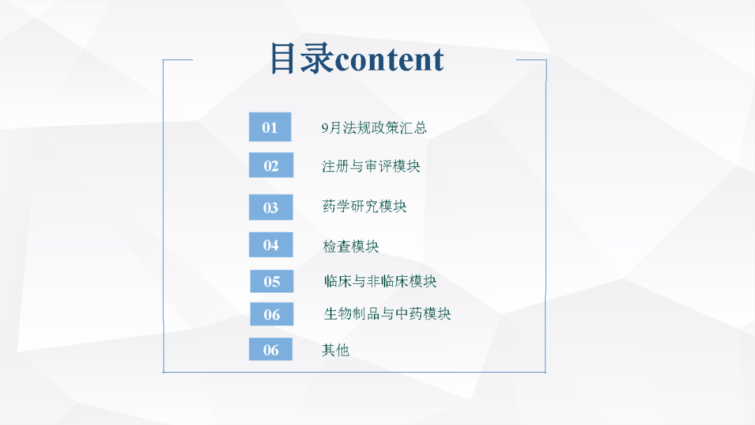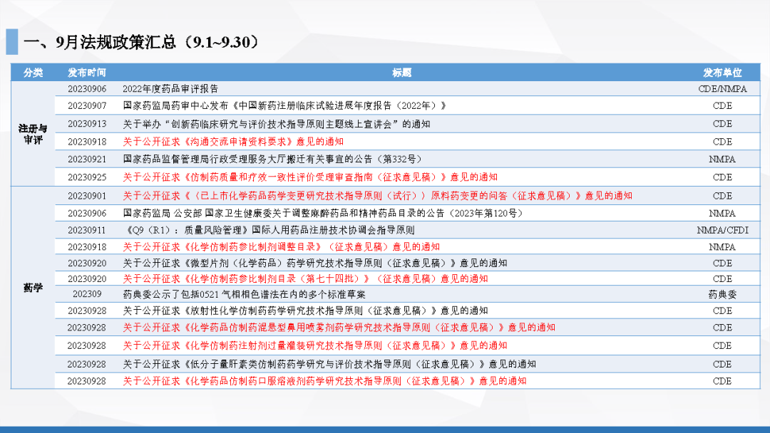 2023年10月(yuè)19日,知和(hé)醫藥注冊部帶來專題培訓《法規政策梳理(lǐ)與解讀(dú)》,從注冊與審評、藥學研究、檢查、臨床與非臨床、生物(wù)制(zhì)品與中藥等五大(dà)模塊對CDE、NMPA、CFDI、藥典委、江蘇省局、科技部等權威單位2023年9月(yuè)發布的(de)32個(gè)法規政策及通知做深入梳理(lǐ)與解讀(dú),開(kāi)展專題培訓。