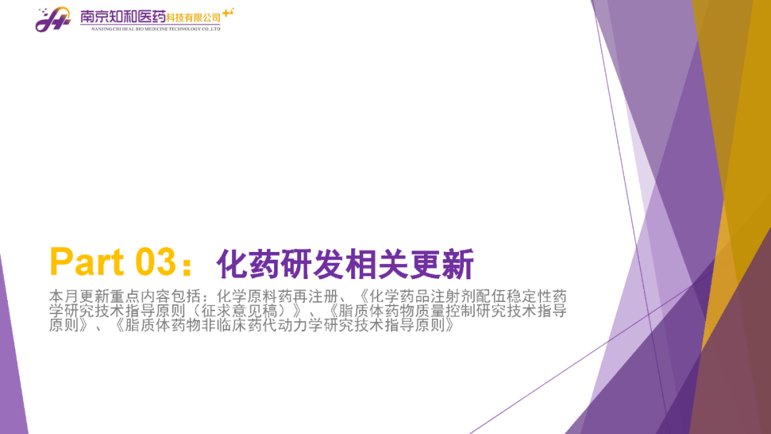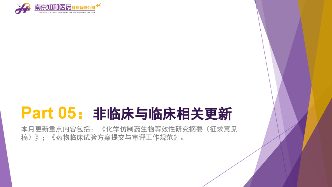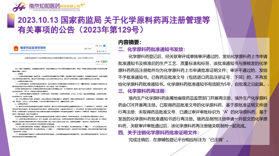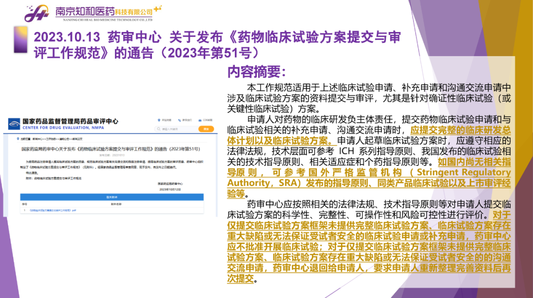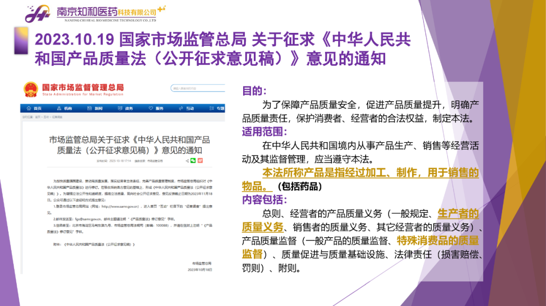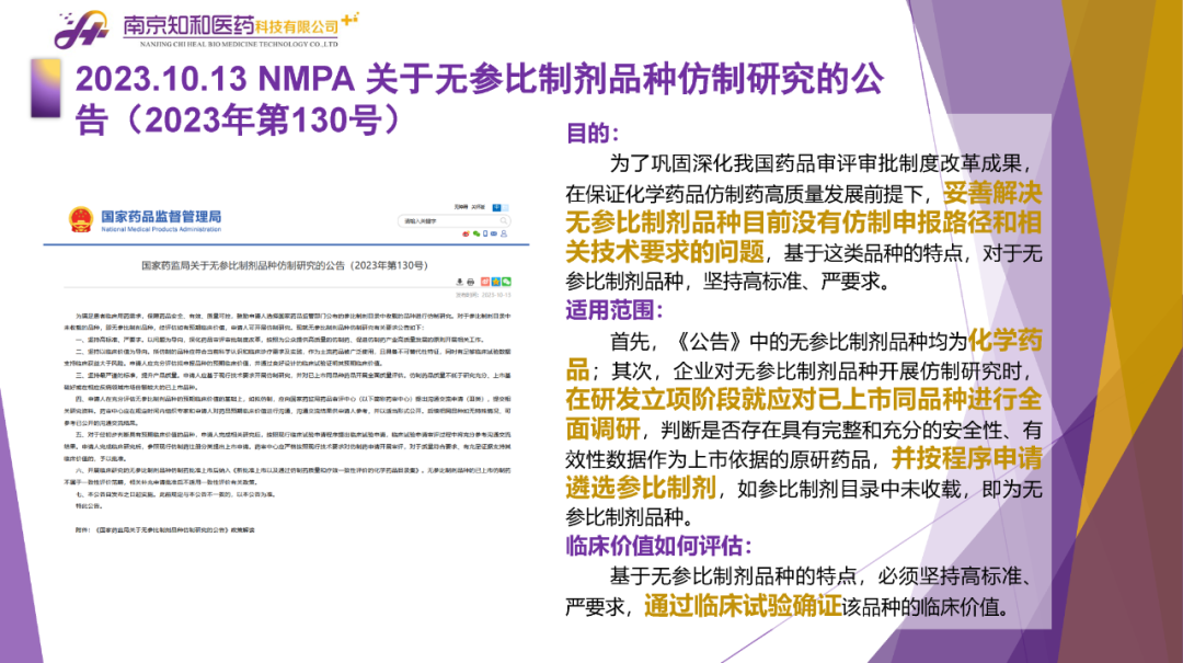 2023年11月(yuè)6日,知和(hé)醫藥注冊部帶來專題培訓《10月(yuè)法規政策梳理(lǐ)與解讀(dú)》,從注冊監管、化藥相(xiàng)關、現場(chǎng)核查、臨床與非臨床、中藥與生物(wù)制(zhì)品、集采政策、法規培訓等七大(dà)模塊對CDE、NMPA、CFDI、藥典委、國家市場(chǎng)監督管理(lǐ)局、藥物(wù)政策與基本藥物(wù)制(zhì)度司、藥監局(江蘇省、山東省、廣東省)、藥品審評查驗中心(山東省)等權威單位2023年10月(yuè)發布的(de)53條法規政策及通知做深入梳理(lǐ)與解讀(dú),開(kāi)展專題培訓。本月(yuè)更新内容關鍵詞包括了無參比品種仿制(zhì)研究、臨床溝通交流、委托生産監管、持有(yǒu)人(rén)責任、第九批國家集采等。