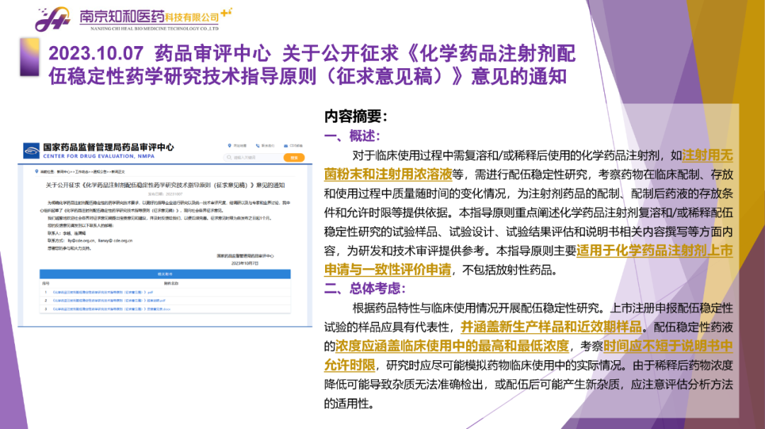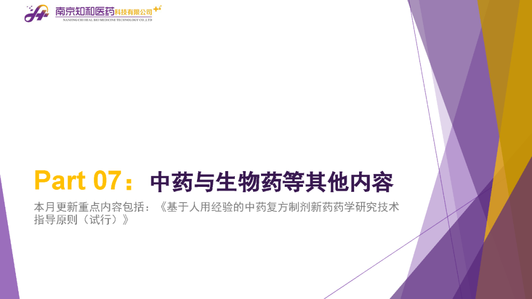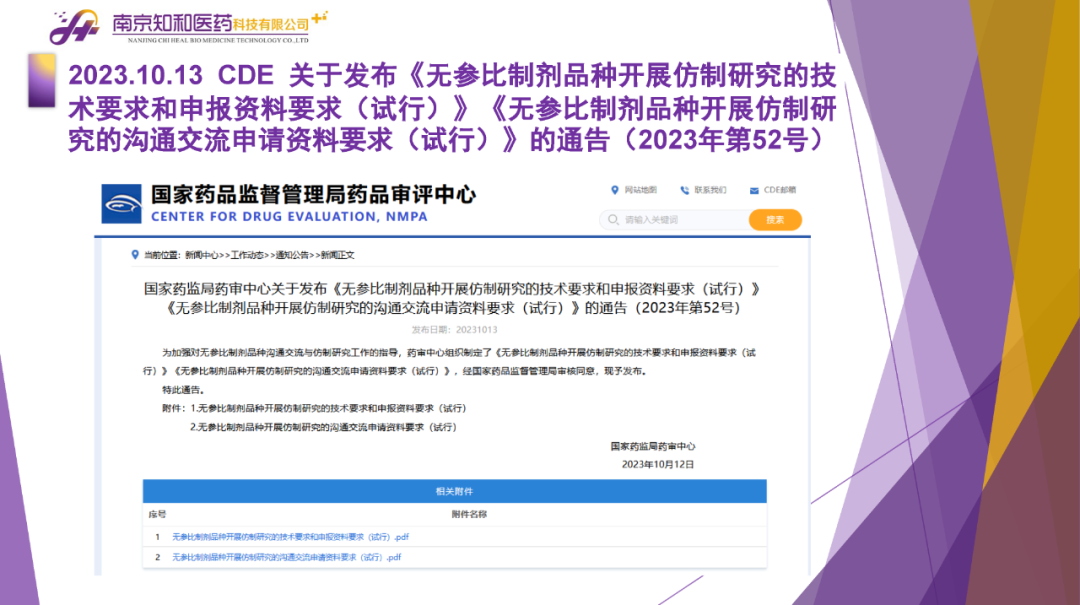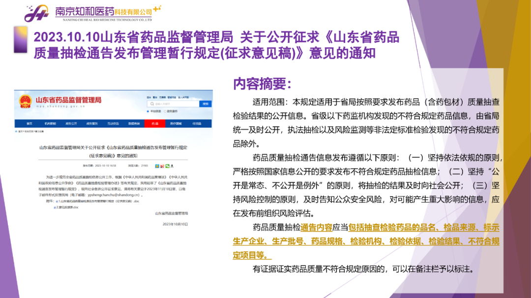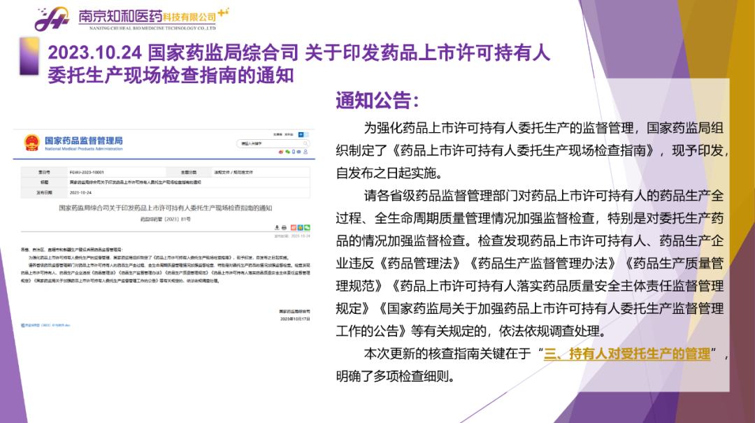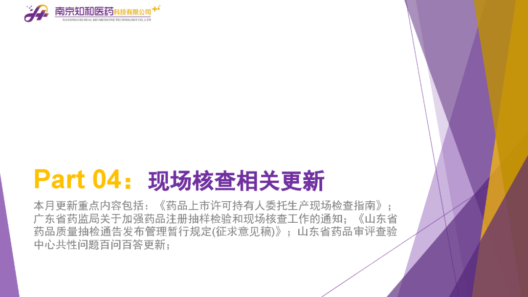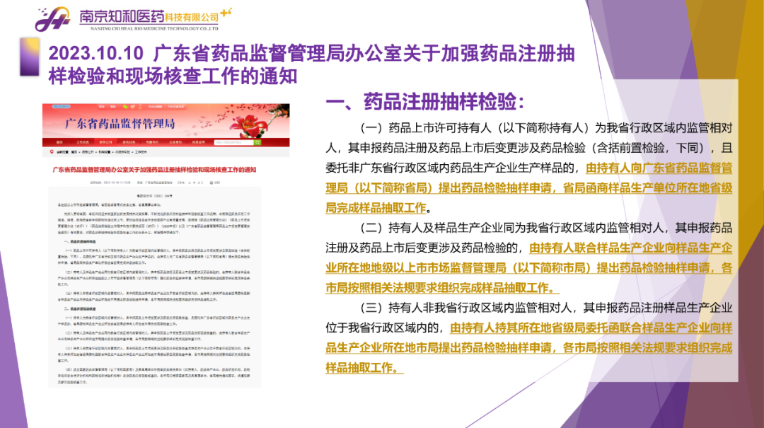 2023年11月(yuè)6日,知和(hé)醫藥注冊部帶來專題培訓《10月(yuè)法規政策梳理(lǐ)與解讀(dú)》,從注冊監管、化藥相(xiàng)關、現場(chǎng)核查、臨床與非臨床、中藥與生物(wù)制(zhì)品、集采政策、法規培訓等七大(dà)模塊對CDE、NMPA、CFDI、藥典委、國家市場(chǎng)監督管理(lǐ)局、藥物(wù)政策與基本藥物(wù)制(zhì)度司、藥監局(江蘇省、山東省、廣東省)、藥品審評查驗中心(山東省)等權威單位2023年10月(yuè)發布的(de)53條法規政策及通知做深入梳理(lǐ)與解讀(dú),開(kāi)展專題培訓。本月(yuè)更新内容關鍵詞包括了無參比品種仿制(zhì)研究、臨床溝通交流、委托生産監管、持有(yǒu)人(rén)責任、第九批國家集采等。
