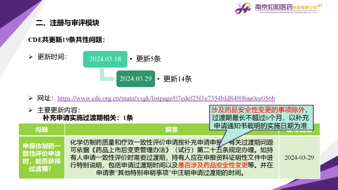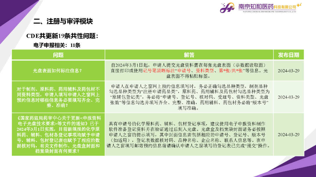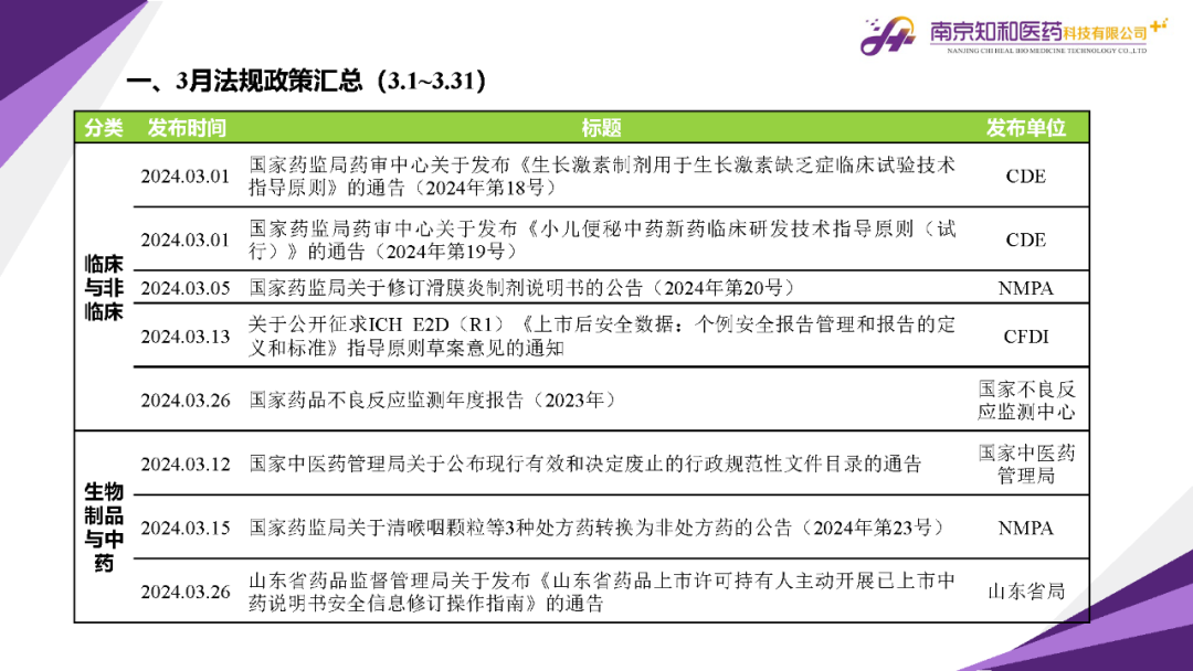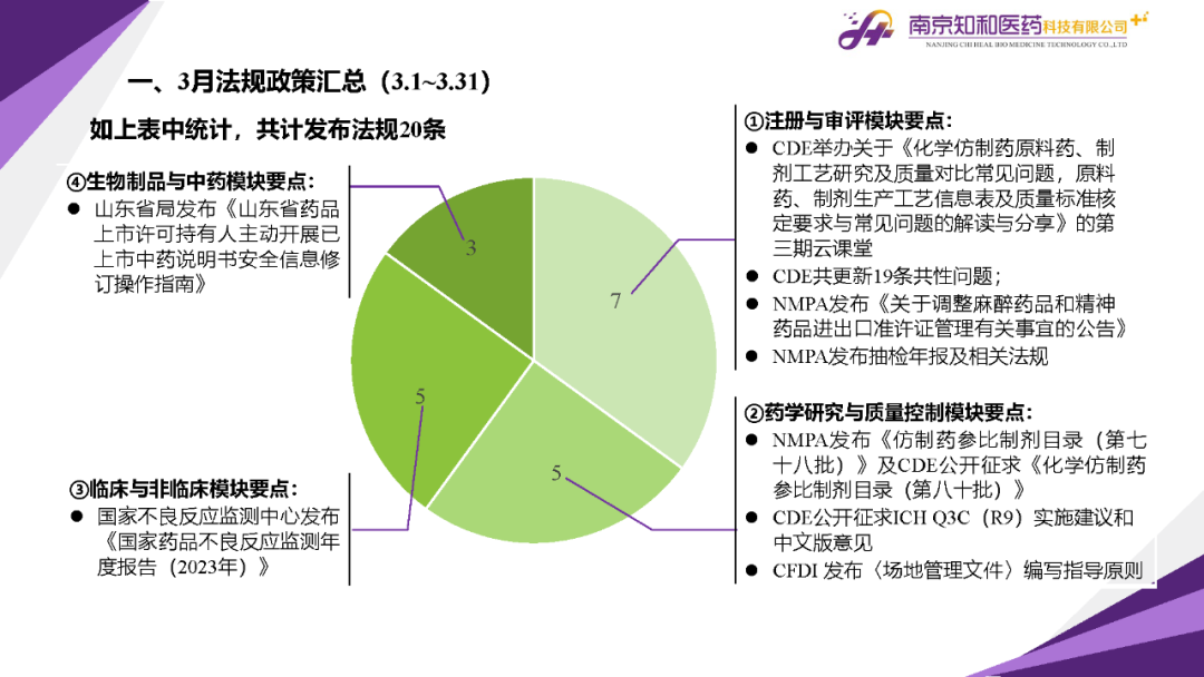 2024年4月(yuè)15日,知和(hé)醫藥注冊部帶來專題培訓《法規政策梳理(lǐ)與解讀(dú)》,從注冊與審評、藥學研究與質量控制(zhì)、臨床與非臨床、生物(wù)制(zhì)品與中藥等模塊對CDE、NMPA、CFDI、中檢院、國家不良反應檢測中心、國家中醫藥管理(lǐ)局、山東省局等權威單位2024年3月(yuè)發布的(de)20條法規政策及通知做深入梳理(lǐ)與解讀(dú),開(kāi)展專題培訓。