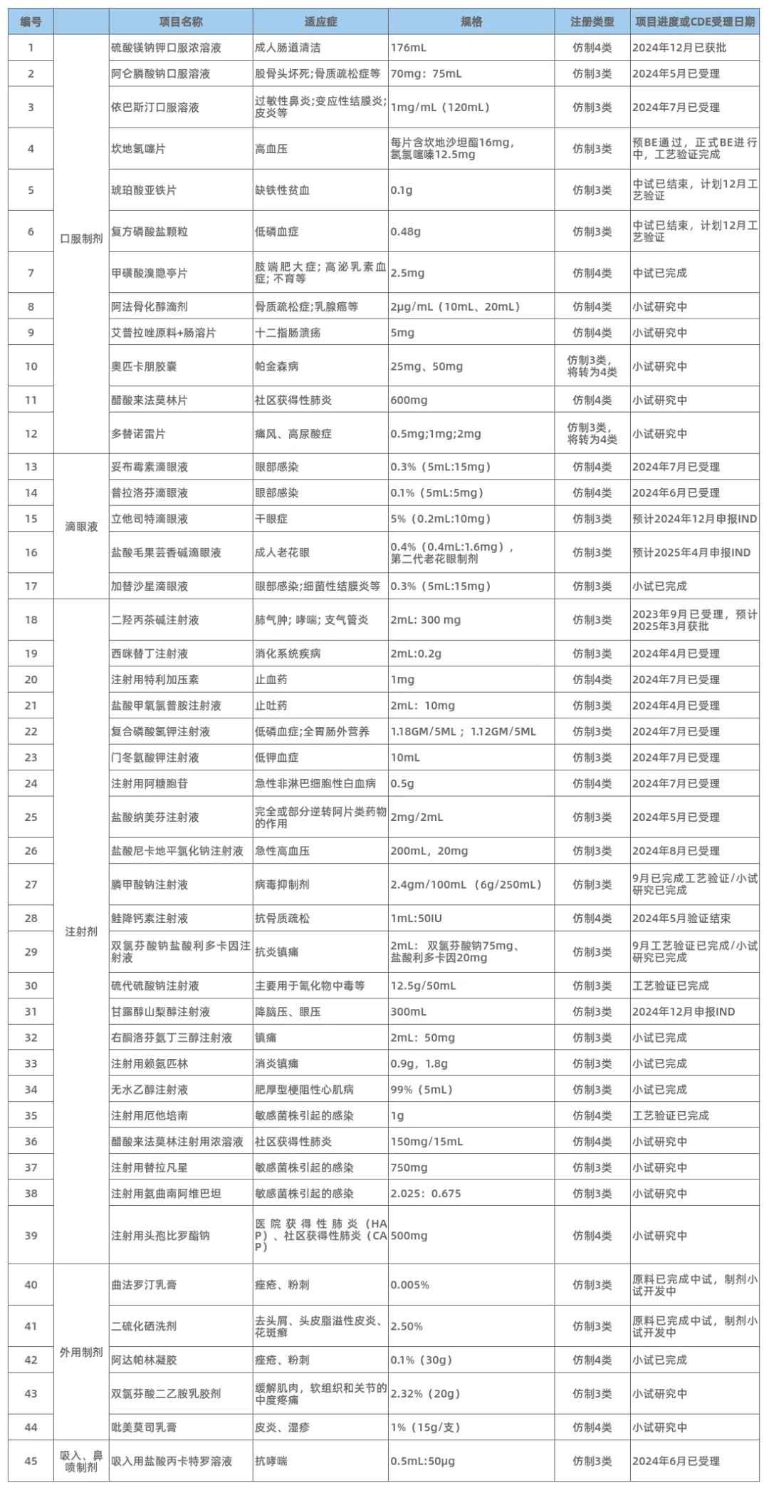 仿制(zhì)藥品種推薦
