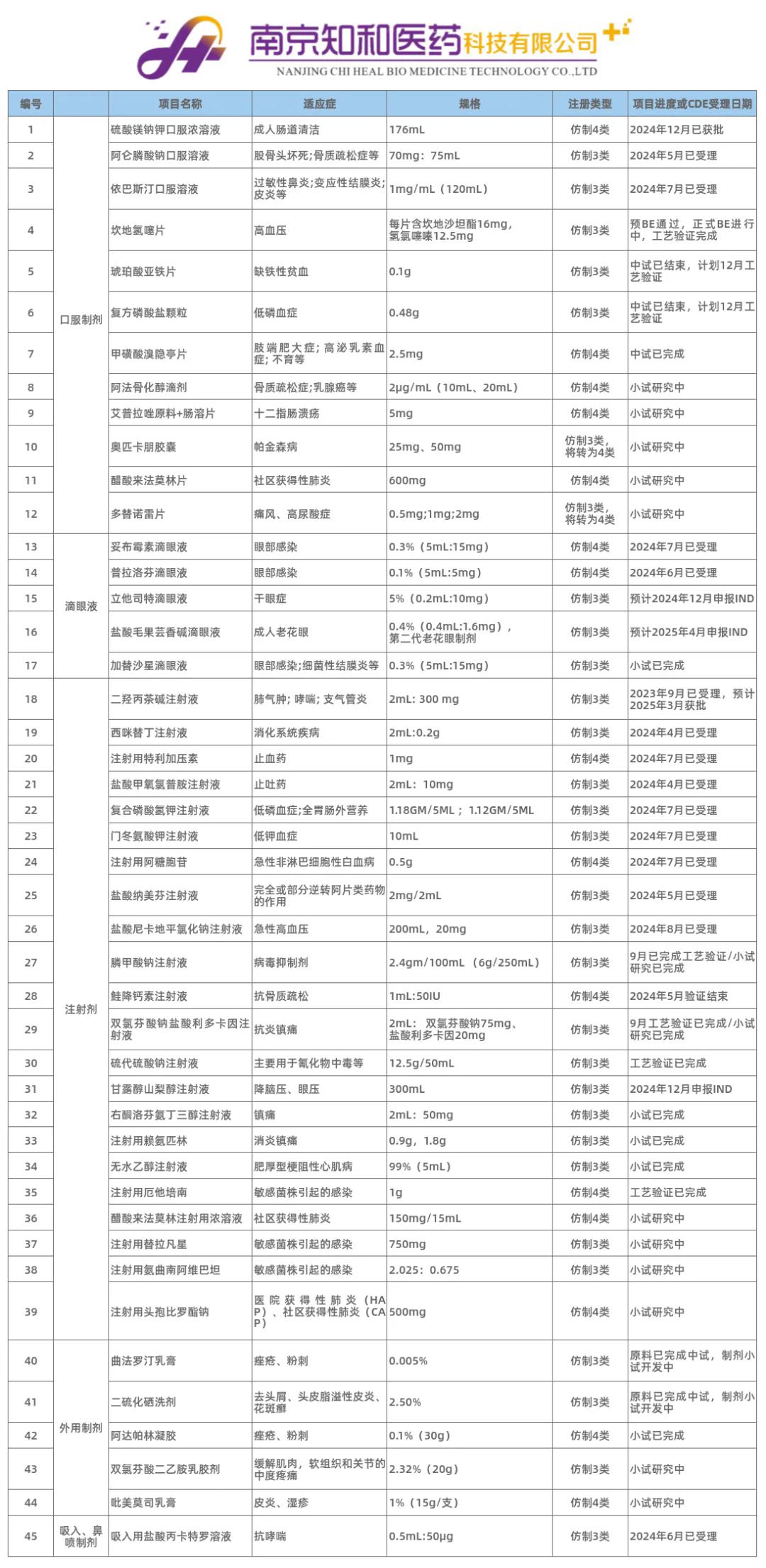 知和(hé)醫藥重點推薦項目一覽